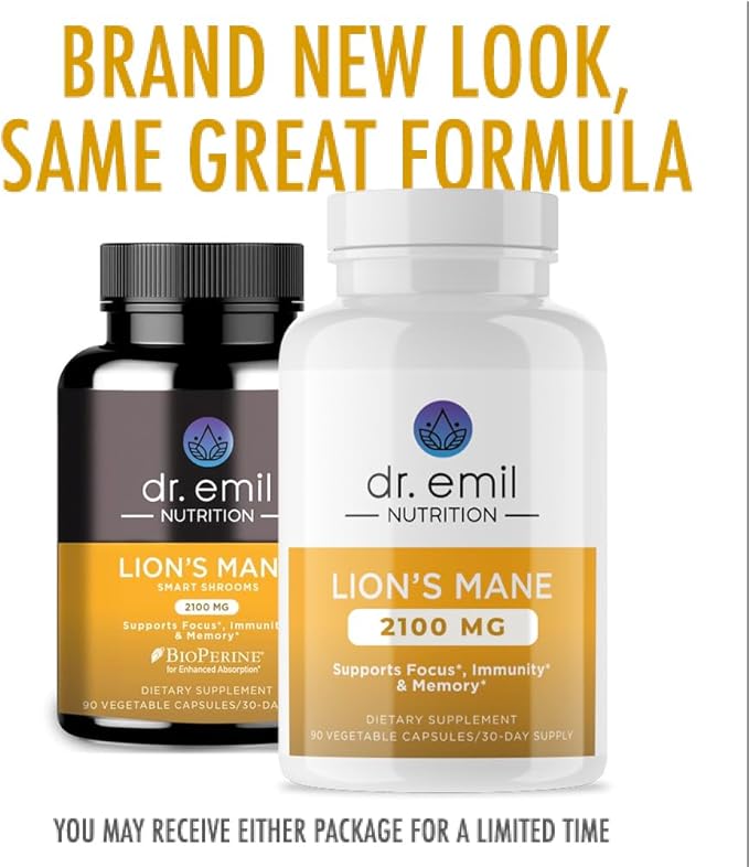 DR. EMIL NUTRITION 2100mg Organic Lions Mane Supplement Capsules - Focus, Mental Clarity & Cognition - Nootropic Lion's Mane Mushroom Supplement with Organic Lions Mane