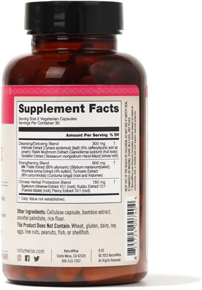 NatureWise Liver Detox Cleanse Supplement (30 Servings) Triple Repair Formula with Milk Thistle, Turmeric, Reishi & Kudzu to Encourage Toxin Removal & Support Normal Function (60 Veg Capsules)
