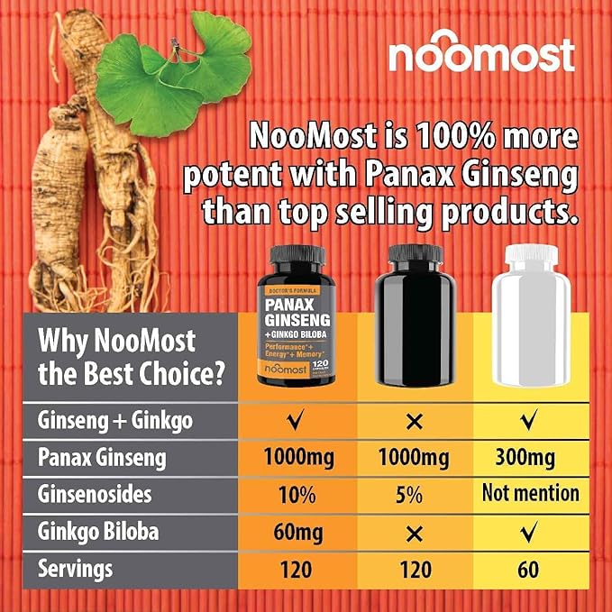 - Offering a variety of benefits of Ginseng extract to business professionals, entrepreneurs, and students, our energy supplements NooMost have something to offer everyone. If you need to enhance your physical performance, strengthen your memory, or support your immune system, you will love Red Ginseng capsules NooMost formulated with Ginko biloba