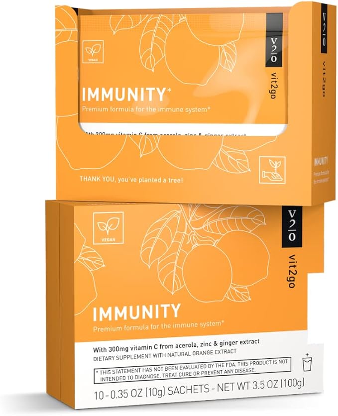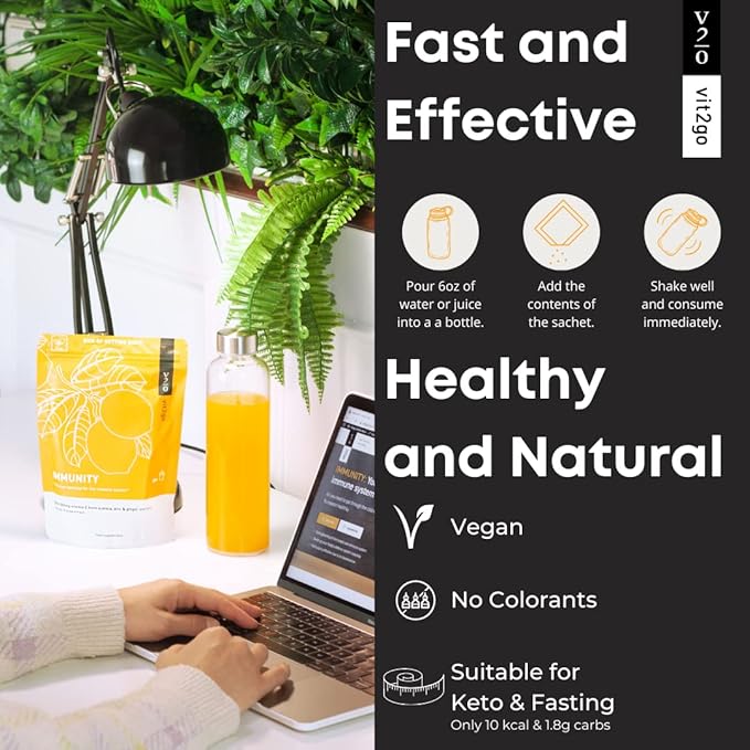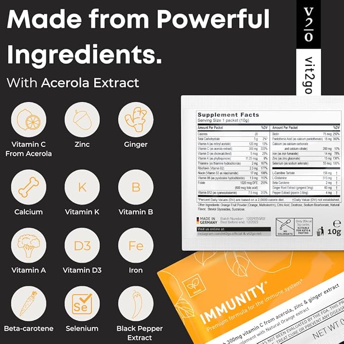 Immunity Booster Powder, Easy to Use Vegan Immune Booster with Vitamin D, A, B, C, & K, NRV Zinc, Plus Ginger Extract (10 Pack)