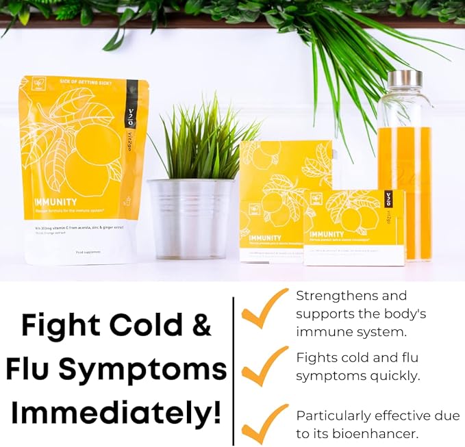 Immunity Booster Powder, Easy to Use Vegan Immune Booster with Vitamin D, A, B, C, & K, NRV Zinc, Plus Ginger Extract (30 Pack)
