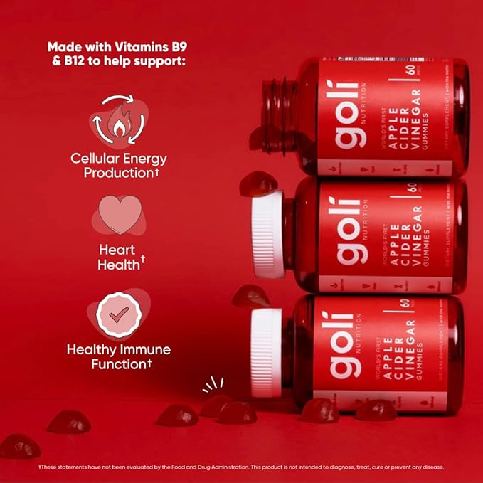- Patented Formula, Essential Vitamins, Great Taste: Our patented formula contains essential Vitamin B12 to help support cellular energy production, immune function, heart health, healthy nutrient metabolism, a healthy nervous system and overall health and wellbeing. Apple Cider Vinegar has traditionally been used for digestion, gut health and appetite. Our unique flavor profile combined with essential vitamins makes Goli ACV Gummies a delicious addition to your daily health routine.