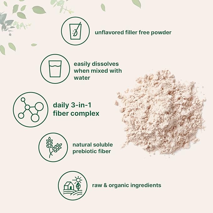 - Organic Triple Soluble Fiber Powder (Chicory Root Inulin Fiber, Acacia Fiber and Psyllium Husks Fiber Blend 3 in 1 Complex Formula), 2 Pounds (32 Ounce), Daily Fiber Advanced Powder, Unflavored, Hunger Control and Vegan Friendly.