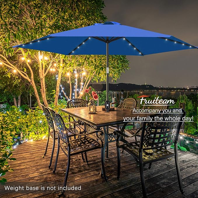 FRUITEAM Solar Patio Umbrella Outdoor LED Swimming Pool Umbrella, 7 1/2 FT Table Umbrella with Lights Heavy Duty Patio Umbrella with Sturdy Ribs, Crank, Easy Tilt Adjustment, Aqua Blue