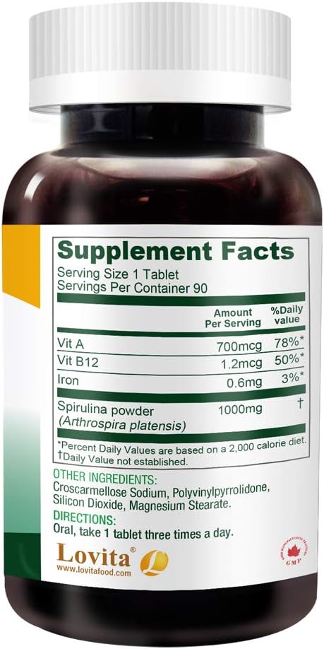 - ✅ [High Quality & Purity]: Lovita organic spirulina tablets are third-party lab tested, free from heavy metals, additives, preservatives, artificial colors, flavors, and are non-GMO and gluten-free.