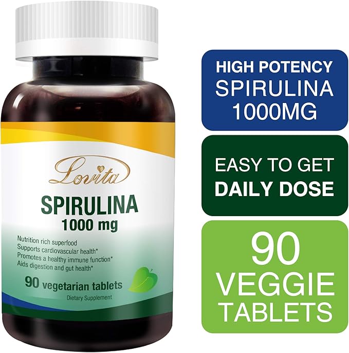 - ✅ [Premium Organic Spirulina]: Lovita spirulina 1000 mg tablets are made from selected organic spirulina, providing an easy way to get a daily dose of this nutrient-rich superfood.