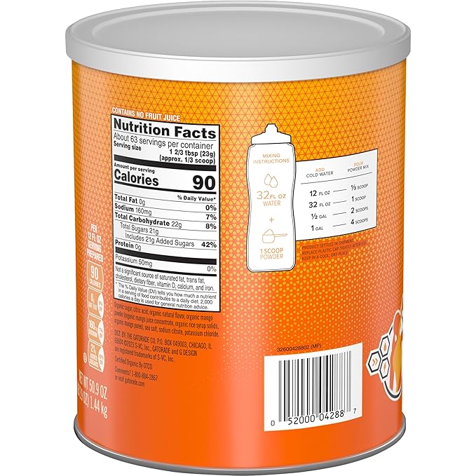 Gatorade G ESSNTL Organic Thirst Quencher Powder, Mango, 50.9oz Canister (Pack of 3)
