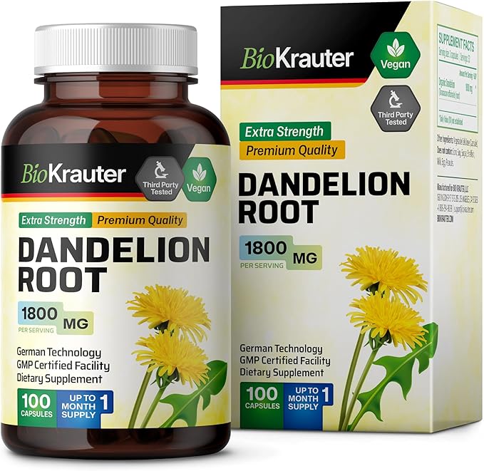 - Extracted from Nature: Our dandelion root powder capsules are extracted from dandelion root, ensuring they are derived from natural sources and free from GMOs. Additionally, we use vegetable cellulose for BioKrauter dandelion capsules, making them vegan.