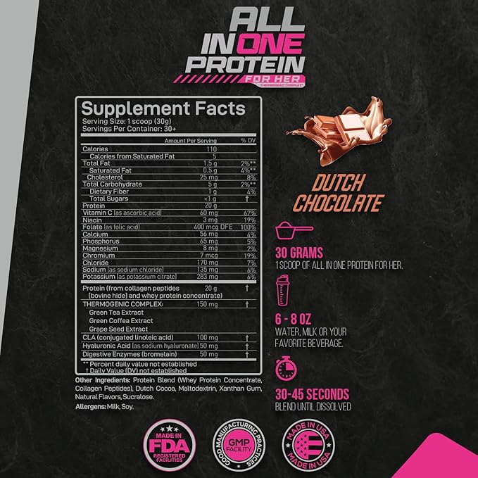 Forzagen All in One Protein for Her | Women’s Protein Powder with Multi Collagen Peptides | Hydrolyzed Collagen Supplement, Gut Health, Great for Pre & Post Workout | Dutch Chocolate, 30+ Servings