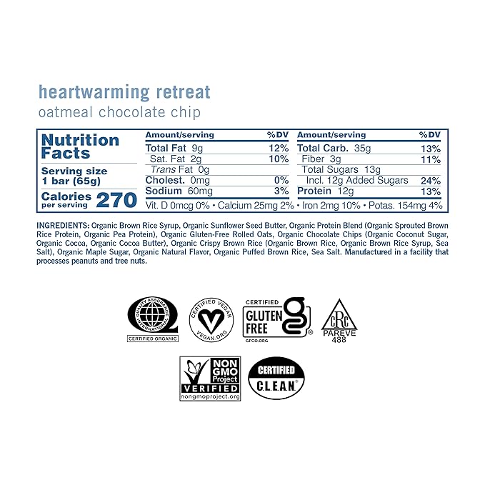 - HEALTHY INDULGENCE: A cozy combination of chewy oats and organic chocolate chips make this protein-filled, nut-free version of our family’s oatmeal chocolate chip cookie recipe a fan favorite.