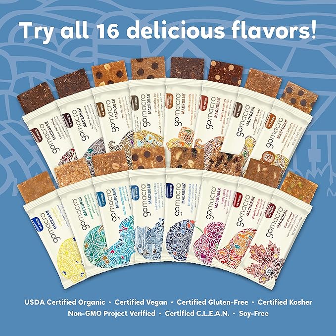 - CERTIFICATIONS YOU CAN TRUST: All GoMacro protein bars are Certified Organic, Vegan, Gluten-Free, Kosher, Non-GMO, C.L.E.A.N., and Soy-Free so you can snack with confidence. If there were a certification for delicious, we’d have that too!