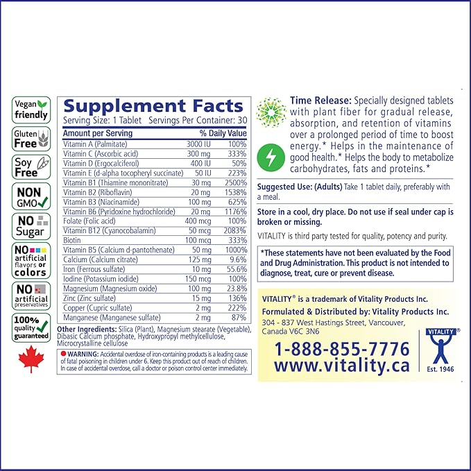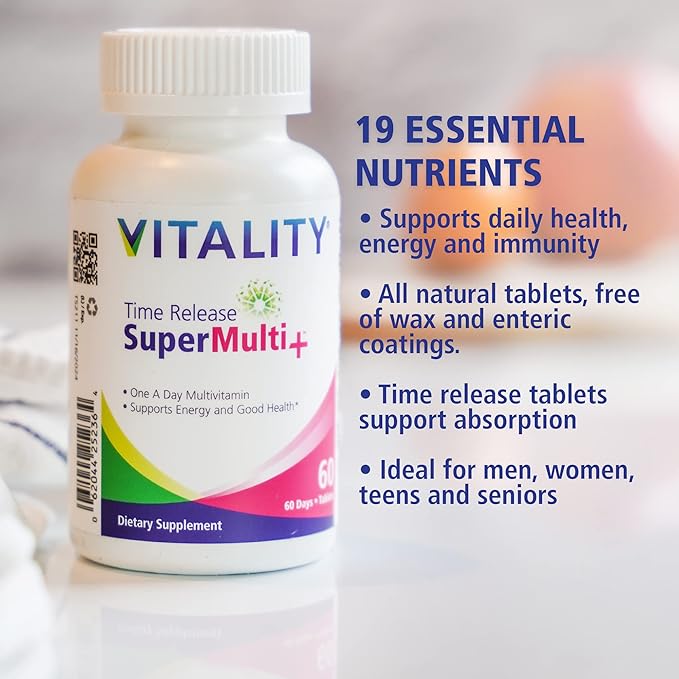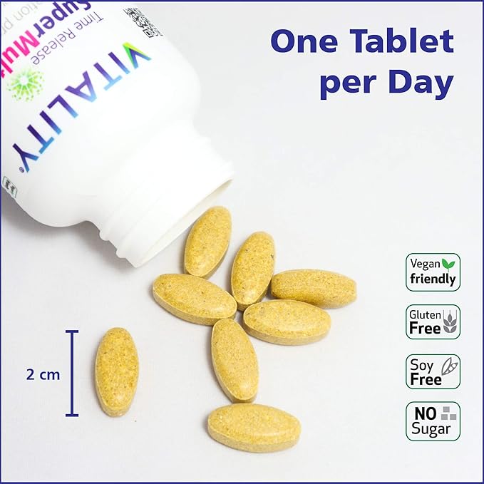 VITALITY Time Release Super Multi+ | Multivitamin | Supports Healthy Hair, Skin and Nails | 60 Tablets