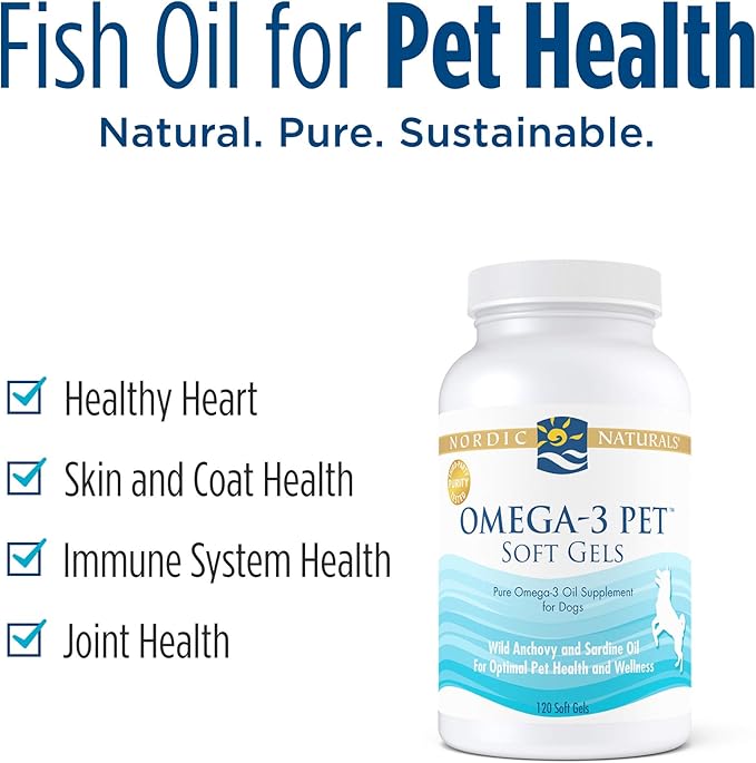 - WHY OMEGA-3 PET - This Nordic Naturals pet product is made with the same exceptional quality oil as our human products, but has been specially formulated for your dog. Omega-3 Pet features omega-3 fish oil in soft gels.