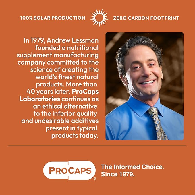 - ETHICAL & ECO-FRIENDLY. ZERO CARBON FOOTPRINT – Uniquely committed to your health and the health of the planet, ProCaps’ facilities are 100% Solar Powered with a Zero Carbon Footprint and an LEED GOLD green building status. ALL ProCaps bottles are made from 100% recyclable post-consumer resin. Plus, Andrew Lessman and ProCaps are the largest donor of prenatal vitamins in the world (over 1.5 billion capsules donated to date). ProCaps, the Informed Choice for Nutritional Supplements.