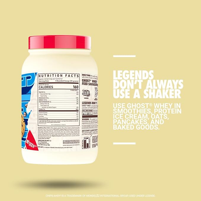 - Versatile and Delicious: GHOST Whey x Chips Ahoy! combines a premium, fully disclosed whey protein blend, a few digestive enzymes, and real Chips Ahoy! cookie pieces in every scoop for a flavor that is second to none. 26 servings.