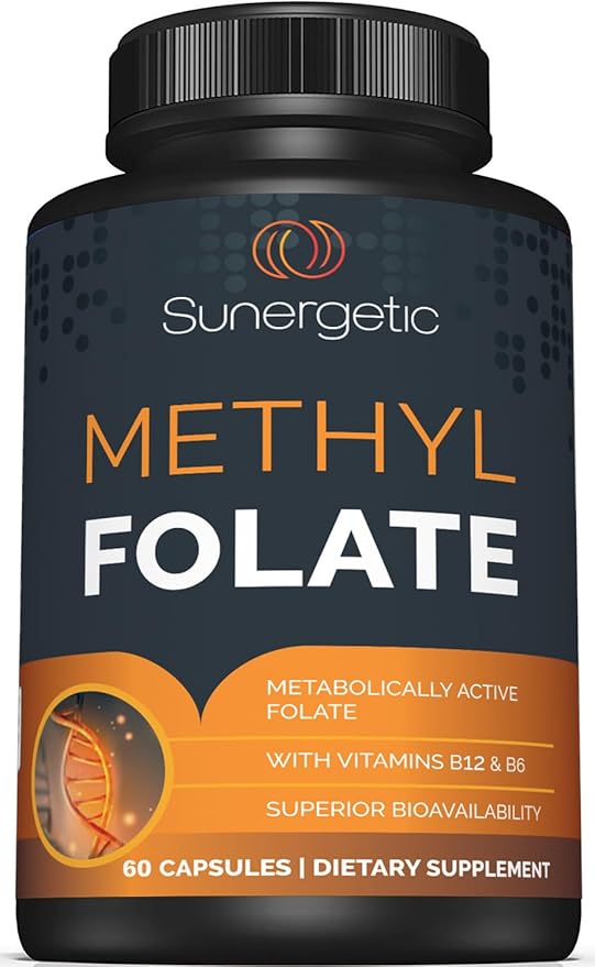 Sunergetic Premium Methyl Folate Supplement – with Methylated Vitamin B12 and Vitamin B6 – Metabolically Active Folate as Magnafolate - Methylfolate 400 mcg per Capsule – 60 Capsules