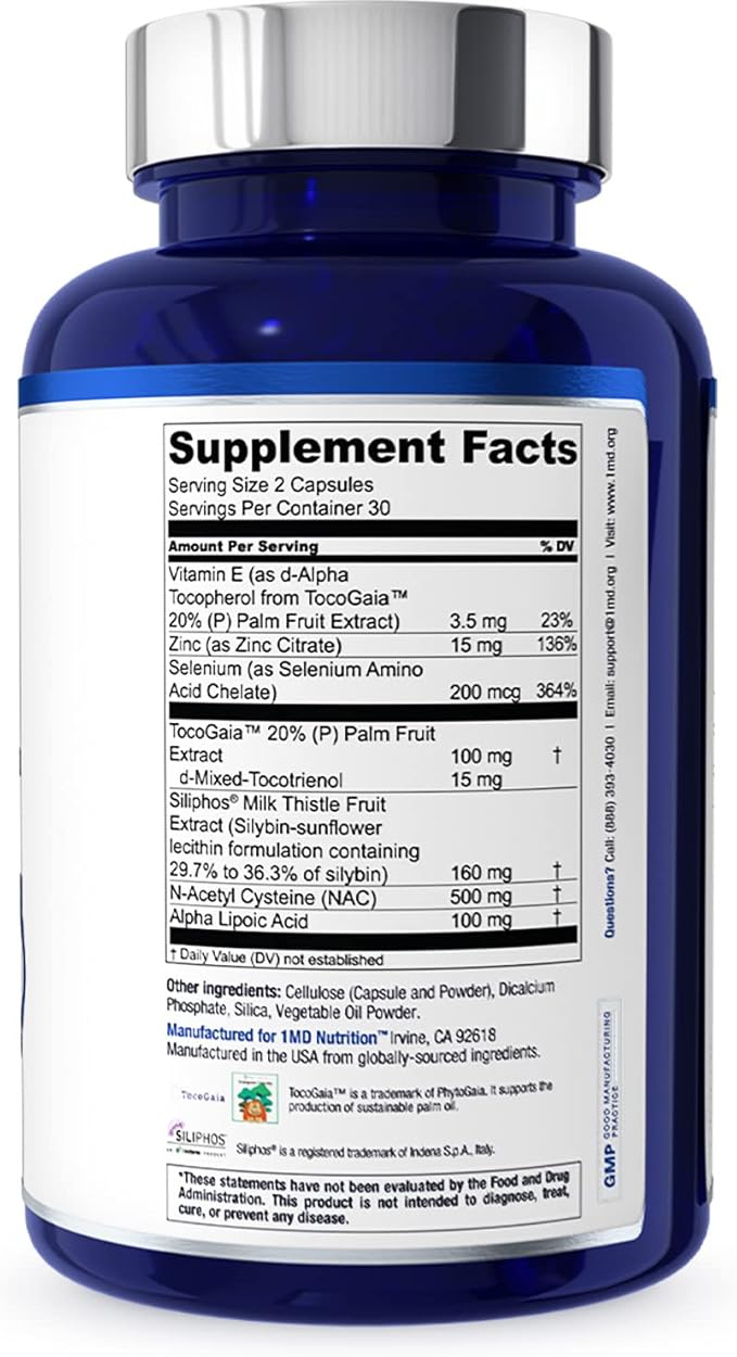 1MD LiverMD - Liver Support Supplement | Siliphos Milk Thistle Extract - Highly Bioavailable, for Liver Support | 60 Capsules