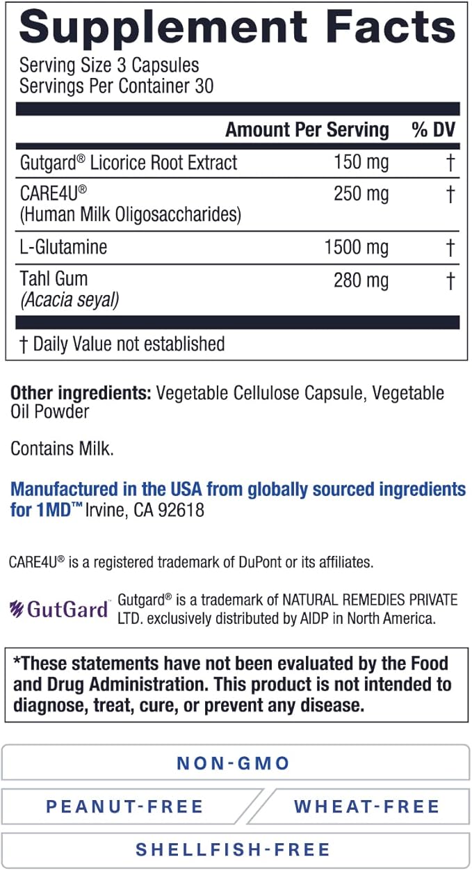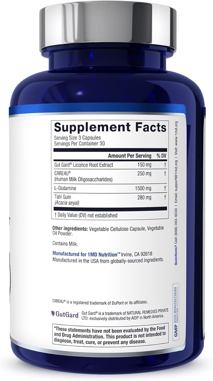 1MD Nutrition GutMD - L-Glutamine Capsules w/Prebiotic for Gut Health - L Glutamine Supplement - Supports Healthy Digestive Tract Integrity - 90 Capsules