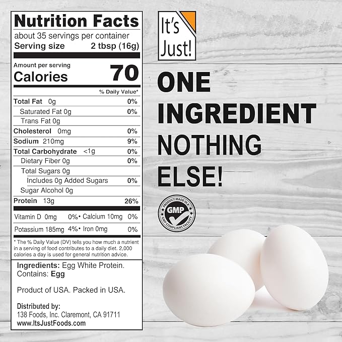 It's Just! - Egg White Protein Powder, Dried Egg Whites Protein, Meringue Ingredient, Non-GMO, USA Farms (Unflavored, 20oz)