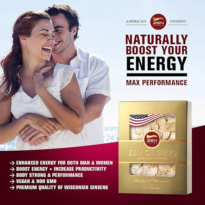 2 Boxes of American Wisconsin Ginseng Slices - Improved Energy, Performance, & Mental Health for Men & Women. Total 8 Oz.