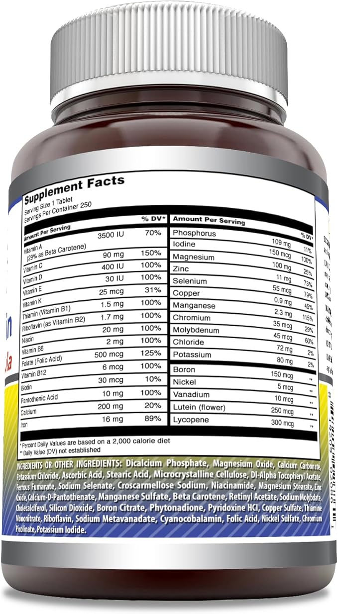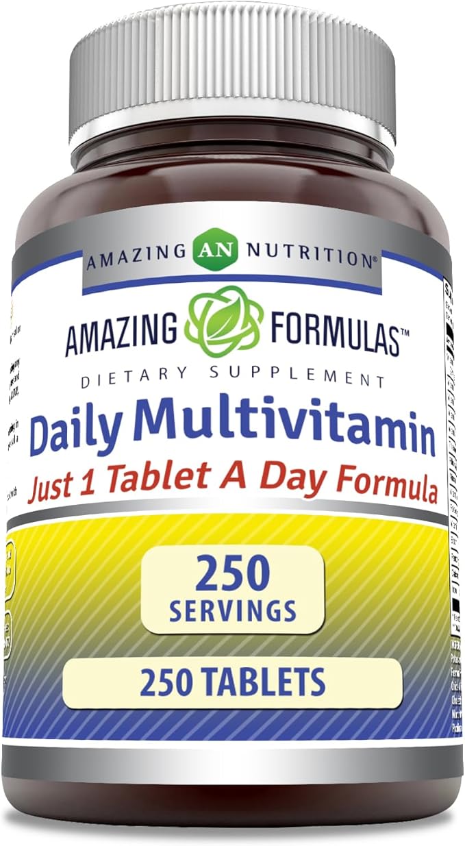 Amazing Formulas Daily Multivitamin Tablets (Non-GMO) - Just 1 Tablets A Day Formula A Complete Multivitamin to Support Cardiovascular Health, Immune Functions, Visual Functions & More* (250 Count)