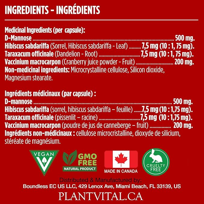 - PLANTVITAL TRUST: Quality-assured DMannose pills with cranberry extract. US-made for superior urinary and bladder health. A family-owned business committed to your satisfaction. Get a full refund if you are not 100% satisfied.
