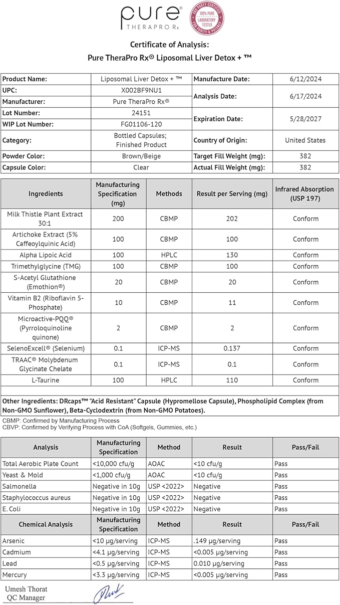 Pure Therapro Rx Liposomal Liver Detox + 120 Acid-Resistant VCaps | Soy-Free Liposomal Format Containing Methylation Nutrient Cofactors | Supports Liver Detox and Cleansing | Vegan