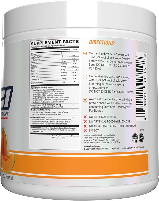 EHP Labs OxyShred Pre Workout Powder & Shredding Supplement - Preworkout Powder with L Glutamine & Acetyl L Carnitine, Energy Boost Drink - Wild Melon, 60 Servings