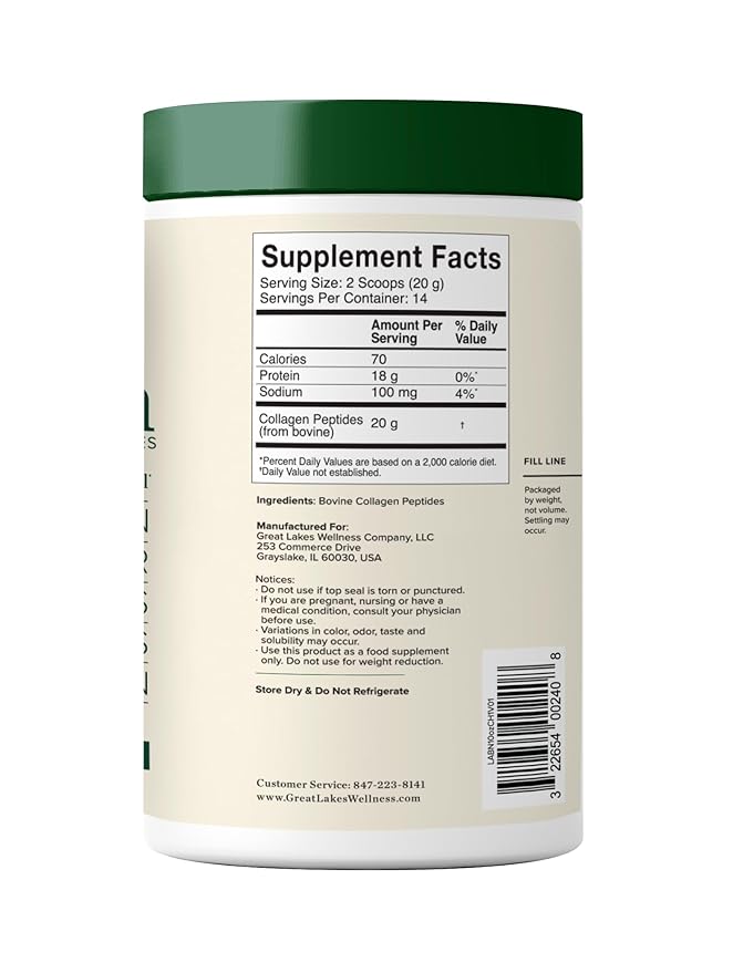 - HYDROLYZED FORMULA: An easy way to supplement collagen into your diet. Great Lakes Wellness Collagen Peptides Powder provides support for collagen production as we age. Good for men and women.