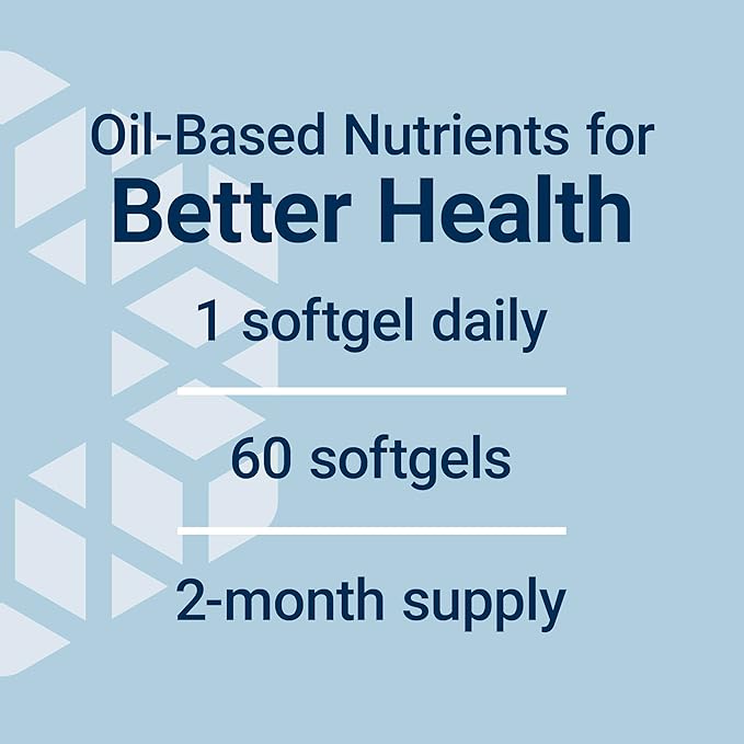 - Fill dietary gaps – Most people don’t get enough oil-based nutrients from their diet or daily multivitamins. So, we’ve packed a variety of fat-soluble vitamins into a single softgel to encourage whole-body health, especially over time.