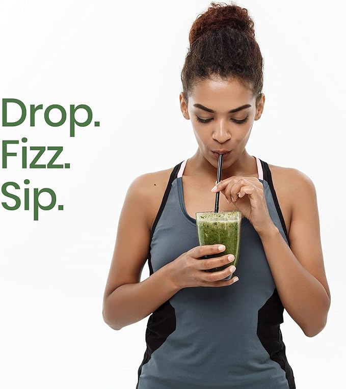 - 5.DROP, FIZZ, GREEN UP: Get over the traditional boring way of consuming your daily share of greens by popping just 1 delicious tablet in water. Drop 1 effervescent tablet in 250 ml of water, and wait until it completely dissolves or fizzles out before drinking the delicious green juice. These fizzy tabs are gentle on the stomach and can be taken daily for best results....