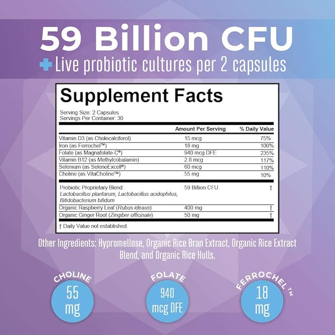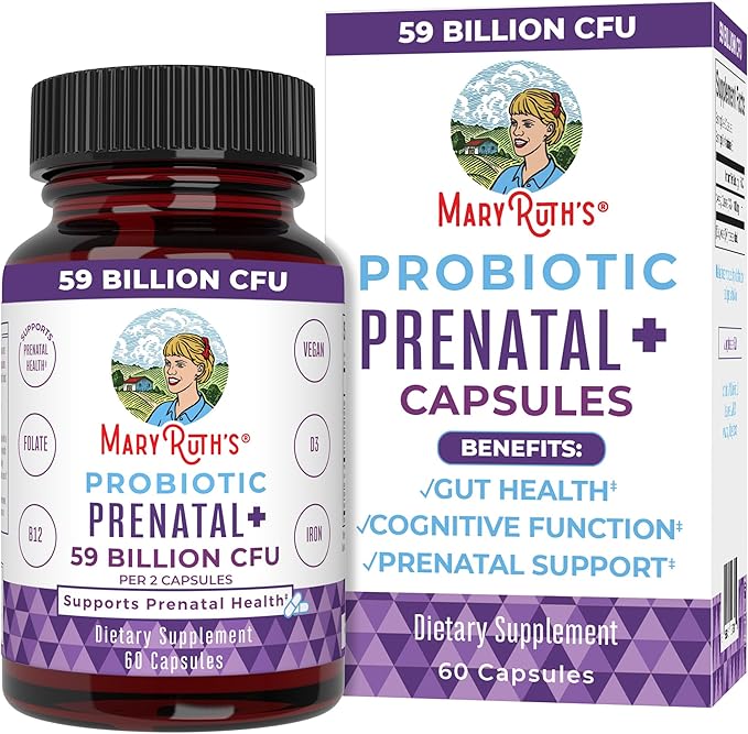 MaryRuth Organics Prenatal Vitamins & Probiotics | 59 Billion CFU | Vitamin D3 & B12 | Iron | Folate | Selenium | Choline | Vegan | Non-GMO | 60 Capsules