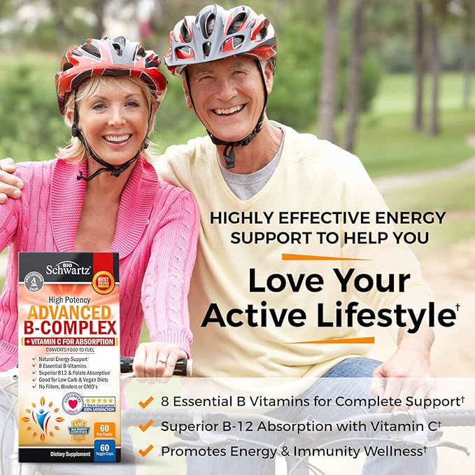 - Includes all B vitamins: BioSchwartz advanced B complex includes vitamins B1, B2, B3, B5, B6, B7, B9, B12, plus folic acid & vitamin C to support healthy natural energy levels and heightened cognitive performance