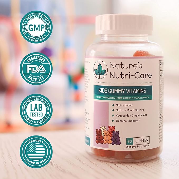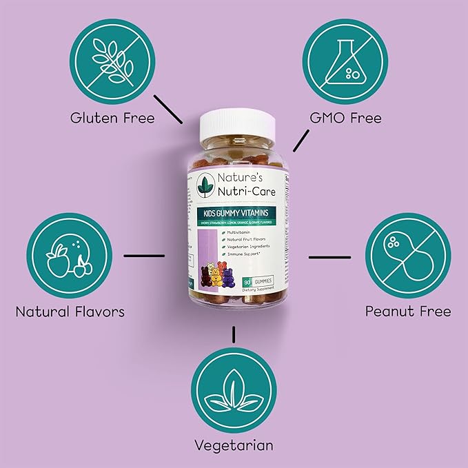Nature's Nutri-Care Kids Gummy Vitamins - Kid Multivitamin Gummies with Vitamin C & D, Folate & Zinc Vitamins for Immunity Support, Grow & Gain Toddler Smart Focus