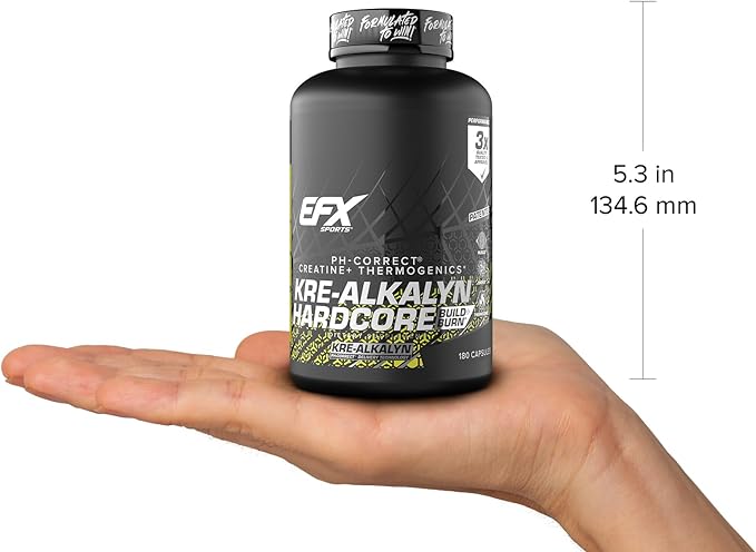 EFX Sports Kre-Alkalyn Hardcore | Thermogenic pH Correct Creatine Monohydrate Pill Supplement | Energy & Strength Pre Workout | 60 Servings, 180 Capsules