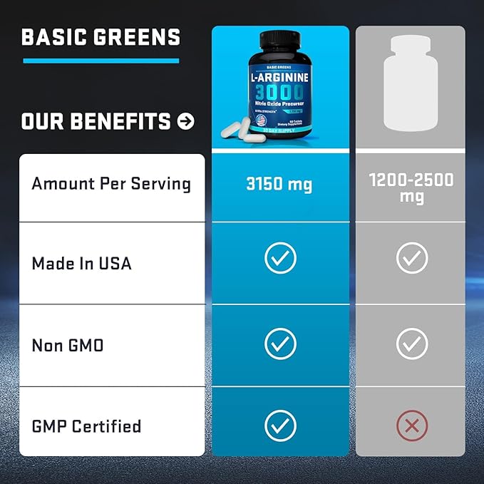 L Arginine 3,150mg (90 Capsules) - L-Arginine Supplement for Men and Women with Nitric Oxide Precursor, LArginine Supplement