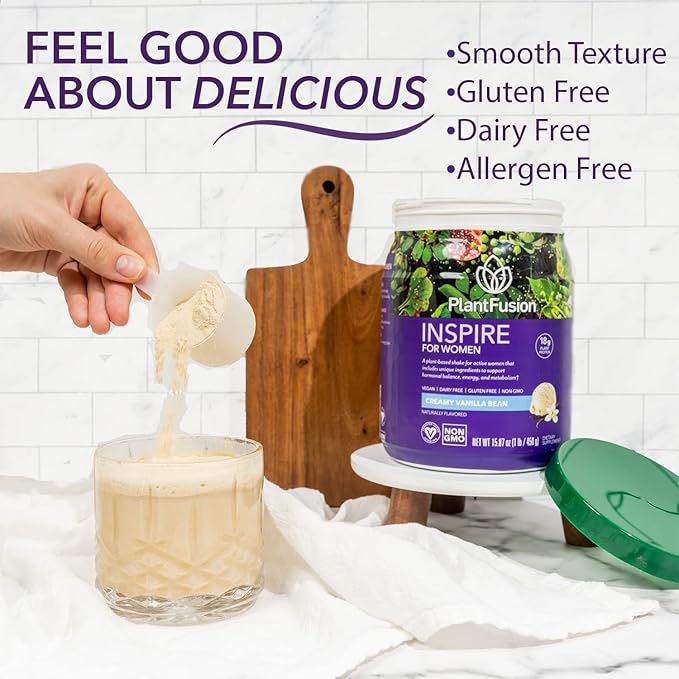 - HELPS SUPPORT STRESS AND METABOLISM - PlantFusion Inspire for Women goes beyond protein to help support hormone balance, energy and metabolism with a complex formula of over 20 different ingredients that includes Pomegranate extract, Ashwagandha, Biotin, L-Theanine and others.
