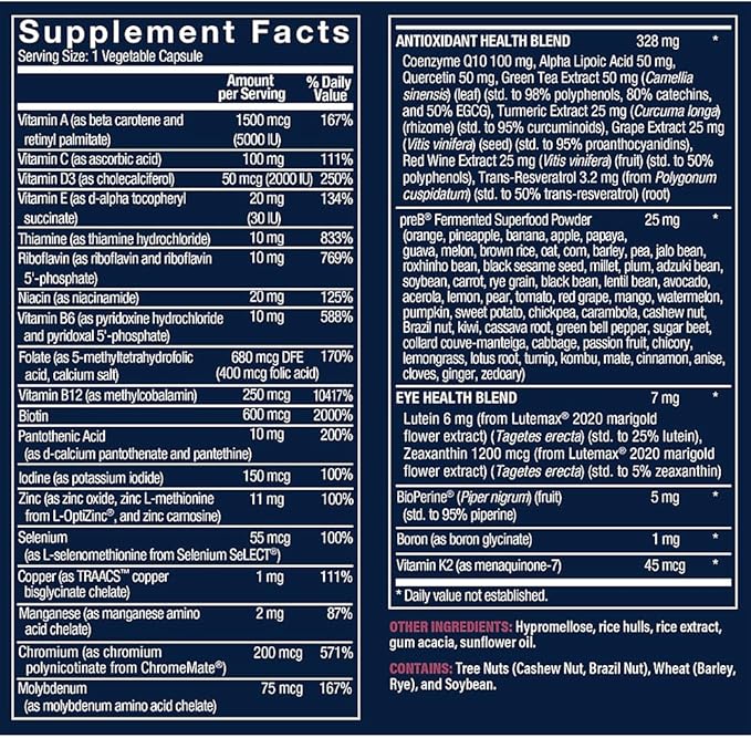 - Supports Healthy Aging: Packed with antioxidants and bioactive nutrients, this multivitamin helps combat the signs of aging and supports healthy skin, bone density, and cognitive function for a more vibrant and active lifestyle.