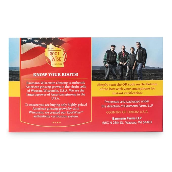 - Get the real thing: We only grow and sell Wisconsin ginseng. On the back of every package you'll see two coded symbols. To verify that your purchase is authentic Baumann Wisconsin-grown American ginseng, simply scan the QR code with your smartphone.