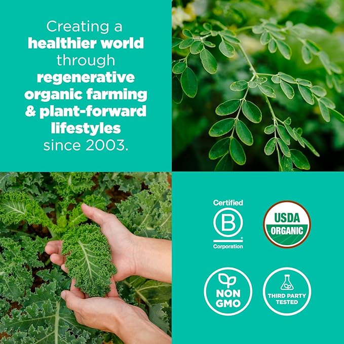 - Contains organic moringa, kale and wheatgrass juice powder: greens rich in chlorophyll, vitamins and minerals that bolster your detoxification system and help restore alkalinity in the body.