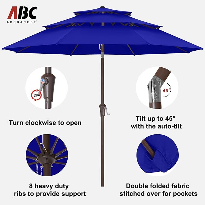 ABCCANOPY Patio Umbrellas 3 Tiers 11FT (Blue)