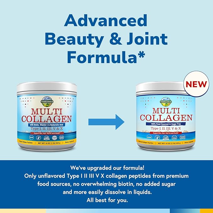 - Enhanced Formula: Our best-selling collagen powder now comes in an improved formula! This enhanced formula features 10g of professional grade hydrolyzed collagen peptides per scoop with no overwhelming amounts of biotin for a better balance of nutrients. Our Multi Collagen Peptides Powder contains a deep profile of 5 major types of collagen from natural food sources - types I, II, III, V & X to give your body the diverse and powerful colageno for women and men.*
