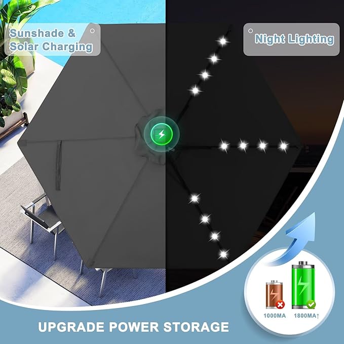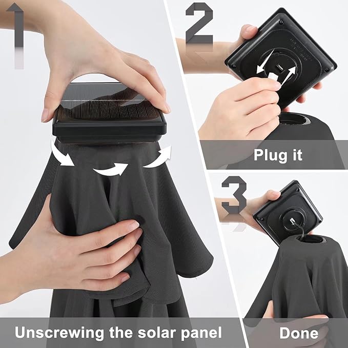 - ★ Hassle-free setup and storage with a detachable pole and crank handle; NOTICE: Please check the plug connection by unscrewing the solar panel before use, and the solar panel should be exposed to sun for 6-9 hours . If the light still not work, please contact us, we will solve this problem for you. Umbrella base not included