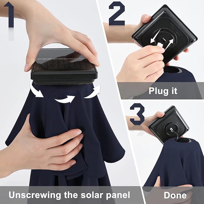 - ★ Hassle-free setup and storage with a detachable pole and crank handle; NOTICE: Please check the plug connection by unscrewing the solar panel before use, and the solar panel should be exposed to sun for 6-9 hours . If the light still not work, please contact us, we will solve this problem for you. Umbrella base not included