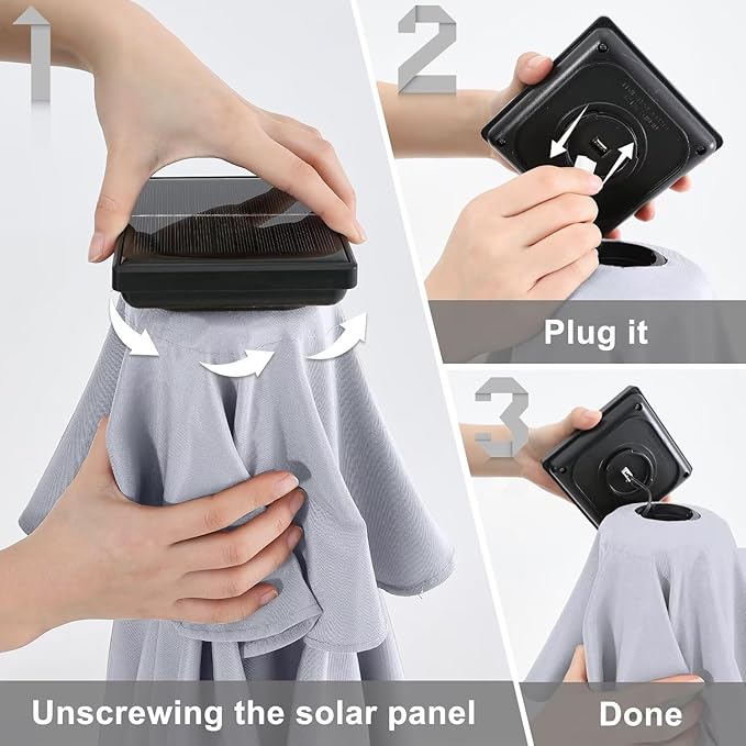 - ★ Hassle-free setup and storage with a detachable pole and crank handle; NOTICE: Please check the plug connection by unscrewing the solar panel before use, and the solar panel should be exposed to sun for 6-9 hours . If the light still not work, please contact us, we will solve this problem for you. Umbrella base not included