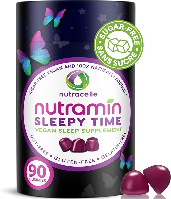 Nutramin Sleepy Time Gummy: The Vegan, Sugar-Free, Natural Melatonin 5mg for Longer Deeper Sleep - No Next-Day Grogginess, Non-Habit Forming Delicious & Drug-Free Allergy-Safe Herbal Sleep Gummies