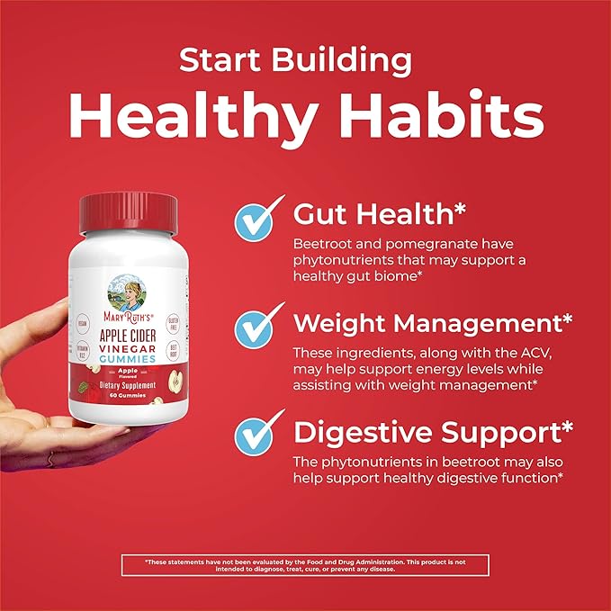 - ACV Gummies: MaryRuth's ACV gummies (including “The Mother”), contain minerals such as magnesium, phosphorus, calcium & potassium, as well as vitamins A, C, E & multiple B vitamins. Our gummies also contain a Vitamin B12 boost, Beet Root, & Pomegranate Juice, all of which offer loads of health benefits of their own!