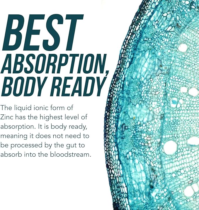 - BEST ABSORPTION, MORE EFFECTIVE THAN CAPSULES & TABLETS - Our Liquid Ionic Zinc maintains its active electrical charge and is immediately bioavailable to the bloodstream, making it the most cellularly bioavailable form of Zinc- More effective and faster acting than Zinc tablets or capsules, which require processing by the gut. Our liquid zinc supplement nourishes your body immediately upon intake.