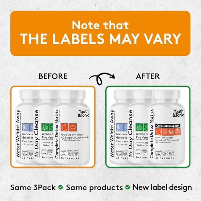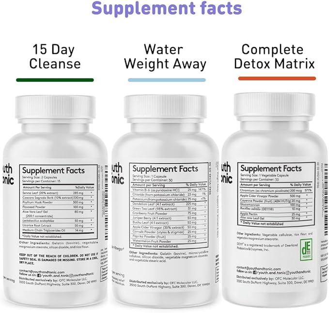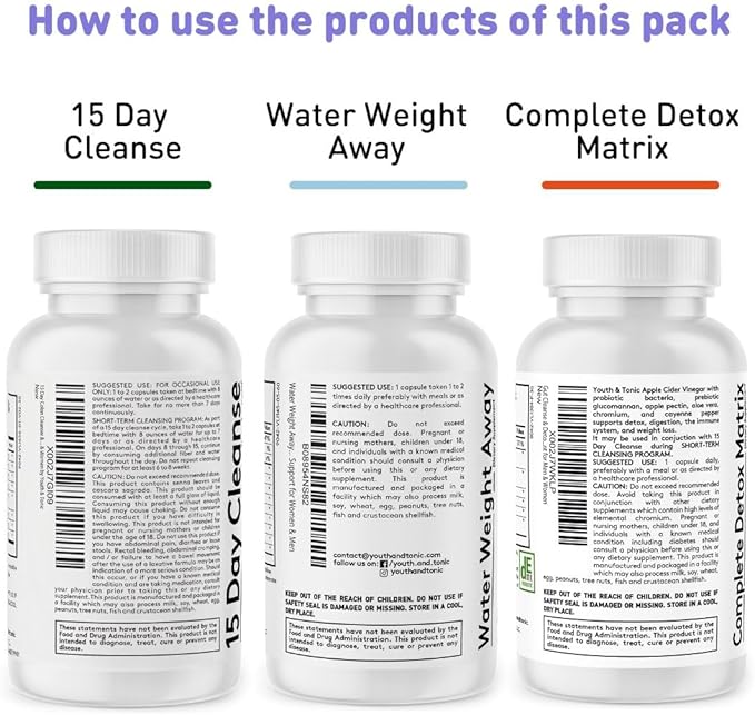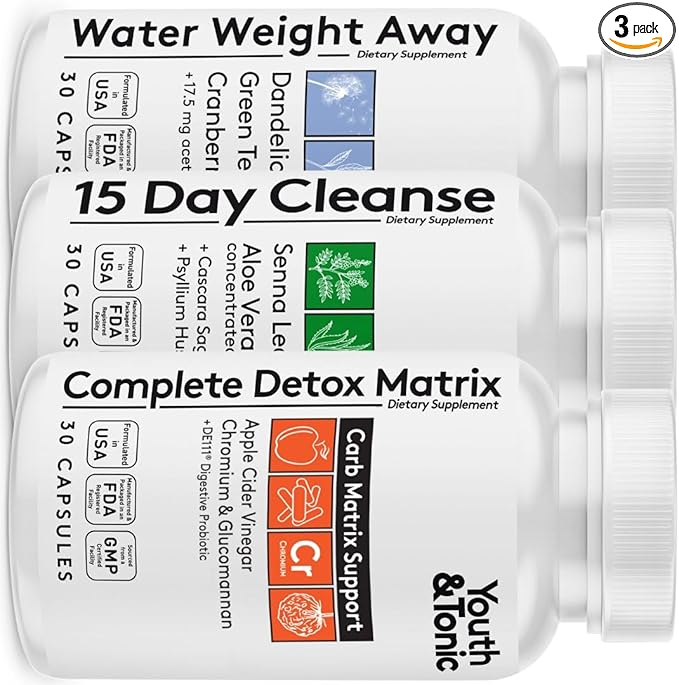 3pk Detox Cleanse Kick Off Weight Management | Colon Cleanser + Water Loss Pills w Dandelion + ACV Full Body Detox + Probiotics | For Flat Stomach, Waistline, Metabolism, Bloating – 90 Pills