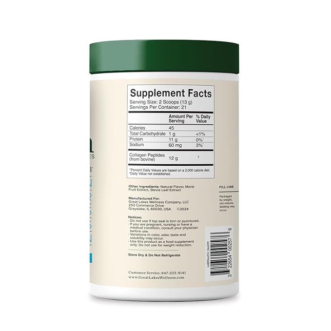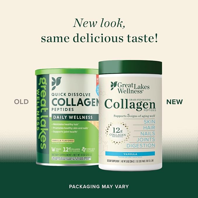 Great Lakes Wellness Collagen Peptides Powder for Skin, Hair, Nails, Joints & Digestion - Vanilla Flavored - Quick Dissolve Hydrolyzed, Non-GMO, Kosher - 10 oz - Packaging May Vary